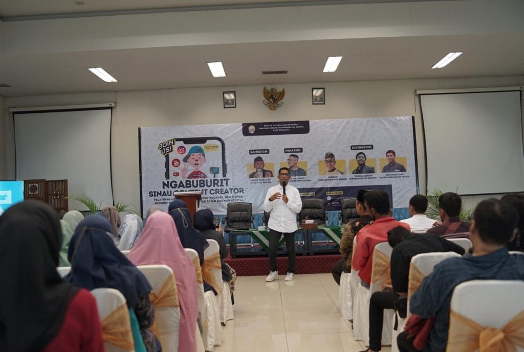 SURABAYA, NGAGELMU.ID – Asyam Haq Wakid, konten kreator profesional, mengupas tuntas bagaimana menjadi konten kreator dalam acara Ngabuburit sinau konten kreator pelatihan membuat konten tiktok, youtube, IG mengoptimalkan konten untuk dakwah digital pada Selasa,(2/04/24).