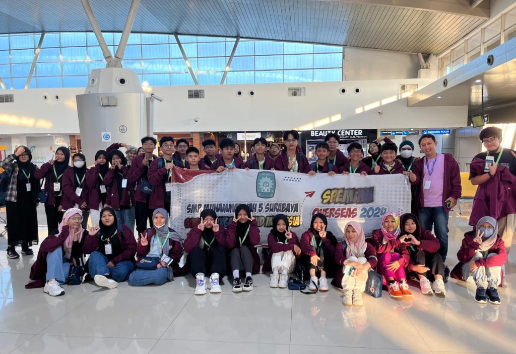 NGAGELMU.ID – Peserta Overseas SMP muhammadiyah 5 Surabaya berangkat ke Singapore-Malaysia, Ahad (28/04/24). Kegiatan ini merupakan proses pembelajaran (education trip) di luar negara yang rencana diadakan selama 7 hari. Sebanyak 38 anak yang diantar orang tuanya sudah memenuhi terminal dua keberangkatan internasional, Bandara Djuanda sejak pukul 04.00 WIB. Mereka terlihat bersemangat sekali.