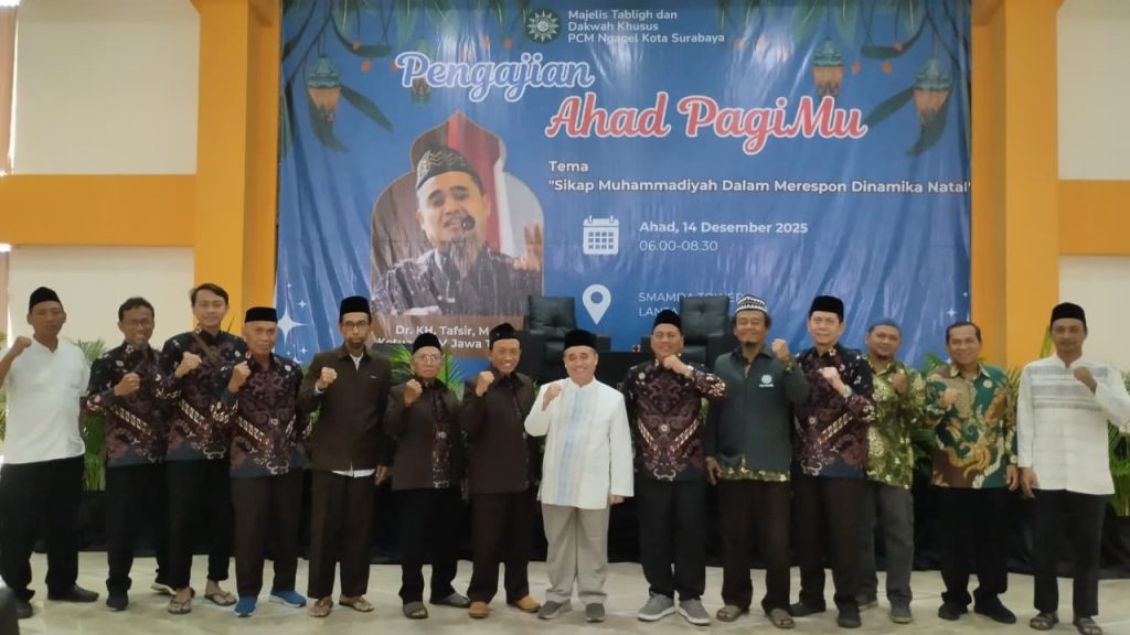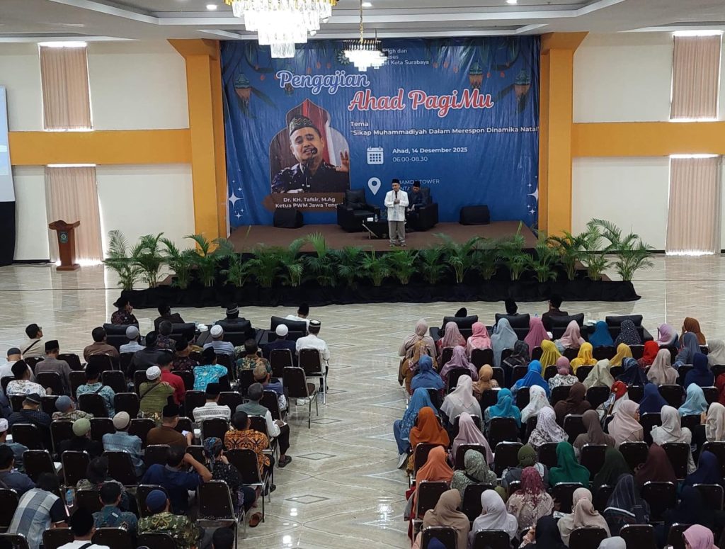 Demikian disampaikan Dr. KH. Tafsir, M.Ag. Ketua Pimpinan Wilayah Muhammadiyah (PWM) Jawa Tengah dalam Pengajian Ahad PagiMu, Pimpinan Cabang Muhammadiyah Ngagel Surabaya, di Smamda Tower lt. 6, Ahad, 14/12/2025.